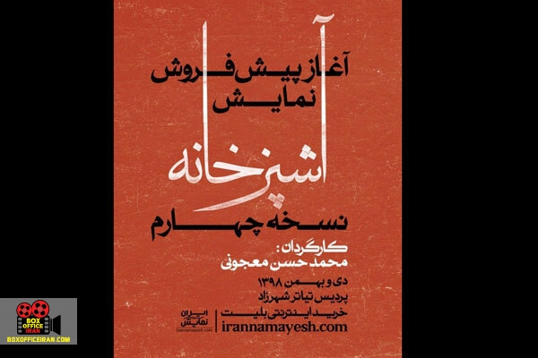 به گزارش باکس افیس ایران: پیش فروش بلیت اجراهای نمایش «آشپزخانه» نسخه چهارم به کارگردانی حسن معجونی آغاز شد.