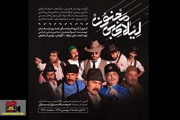 به گزارش باکس افیس ایران: نمایش «لیلای بی مجنون» به کارگردانی مهدی اسماعیلی کاری از گروه فرهنگی هنری ارمغان از ۲۶ دی ماه در فرهنگسرای ارسباران به صحنه می رود.