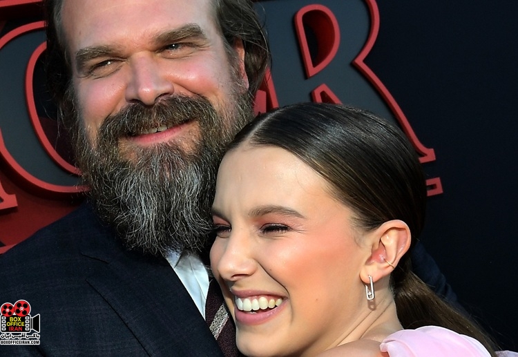 هاربر با لبخندهایی پرانرژی روی فرش قرمز ظاهر شد و همبازیاش، میلی بابی براون را به گرمی در آغوش کشید و با طرفداران سلفی گرفت. این دو همزمان به مراسم رسیدند و در گفتوگو با رسانهها نیز از یکدیگر تمجید کردند. براون در گفتوگو با «اینترتینمنت تونایت» گفت: «میان من و دیوید رابطهای خاص وجود دارد؛ مثل پدر و دختری که همه صحنهها را با هم بازی کردهاند. حضور او در تمام این مسیر برایم باارزش بوده است.»