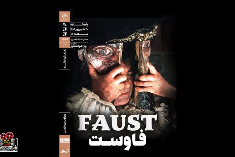 به گزارش باکس افیس ایران: فیلم سینمایی «فاوست» به کارگردانی یان شوانکمایر در خانه هنرمندان ایران روی پرده میرود. فیلم سینمایی «فاوست» محصول سال ۱۹۹۴ و به کارگردانی یان شوانکمایر، ساعت ۱۸ پنجشنبه ۲۰ شهریور در سالن ناصری خانه هنرمندان ایران به نمایش درمیآید.