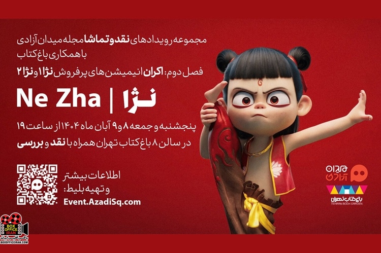 در تاریخ ۸ و ۹ آبان، فصل دوم رویداد سینمایی «نقد و تماشا» با اکران، نقد و بررسی انیمیشنهای پرفروش «نژا» در باغ کتاب تهران برگزار میشود. در این رویداد که در ۲ شب متوالی برگزار میشود، انیمیشنهای «نژا ۱» و «نژا ۲» در سانس ساعت ۱۹ سالن ۸ پردیس سینمایی باغ کتاب تهران اکران میشوند.