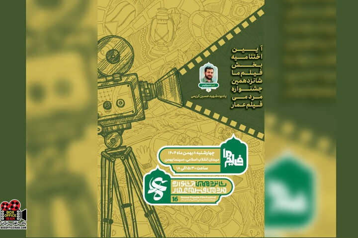 به گزارش باکس افیس ایران: آئین اختتامیه بخش «فیلم ما» شانزدهمین دوره از جشنواره مردمی فیلم عمار، ۸ بهمن در سینما بهمن تهران برگزار میشود. به نقل از روابط عمومی جشنواره، آئین اختتامیه بخش «فیلم ما» شانزدهمین دوره از جشنواره مردمی فیلم عمار، چهارشنبه ۸ بهمن، در سالن ۲ سینما بهمن تهران از ساعت ۱۵:۳۰ الی ۱۸ برگزار میشود.