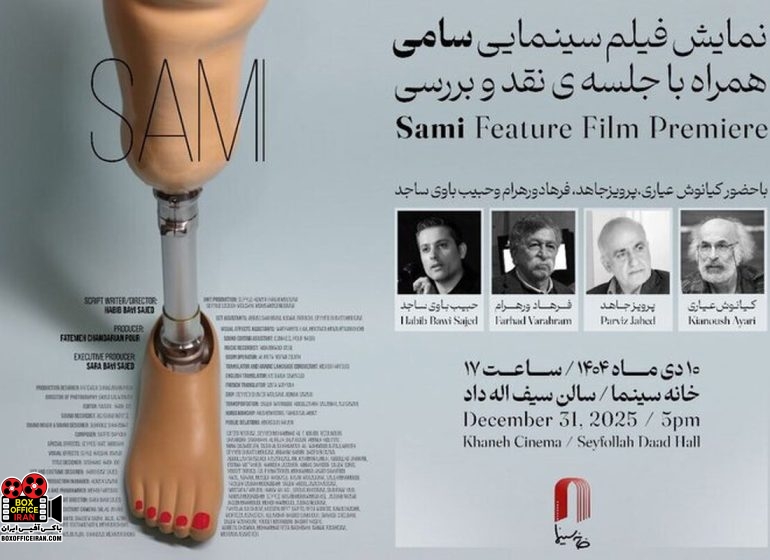 به گزارش باکس افیس ایران: فیلم سینمایی «سامی» ساخته حبیب باوی ساجد در خانه سینما نمایش داده میشود. فیلم سینمایی «سامی» ساخته حبیب باوی ساجد ۱۰ دی ساعت ۱۷ در سالن سیفالله داد خانه سینما نمایش داده میشود.