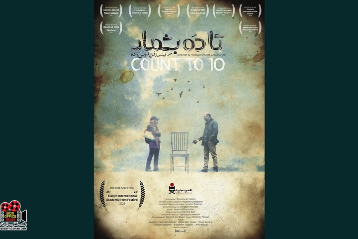به گزارش باکس افیس ایران: فیلم سینمایی «تا ۱۰ بشمار» به کارگردانی و تهیه کنندگی فرید ولی زاده به جشنواره تیانجین چین راه یافت. فیلم سینمایی «تا ۱۰ بشمار» به کارگردانی و تهیه کنندگی فرید ولی زاده با نام بین المللی (Count to 10) از بین آثار ارسالی از ۶۶ کشور جهان، به مرحله یک چهارم نهایی دومین دوره جشنواره بینالمللی فیلم آکادمیک تیانجین چین راه یافت.