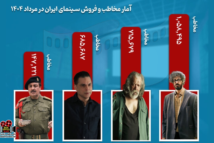همچنین فیلمهای «مرد عینکی» با ۱ میلیون و ۵۸ هزار و ۴۹۵ تماشاگر، «پیر پسر» با ۷۱۵ هزار و ۶۷۹ تماشاگر، «زن و بچه» با ۶۸۵ هزار و ۶۸۷ مخاطب و «صددام» با ۱۴۷ هزار و ۲۲۱ مخاطب، به ترتیب بهعنوان ۴ فیلم پرمخاطب مرداد در سراسر کشور معرفی شدند.