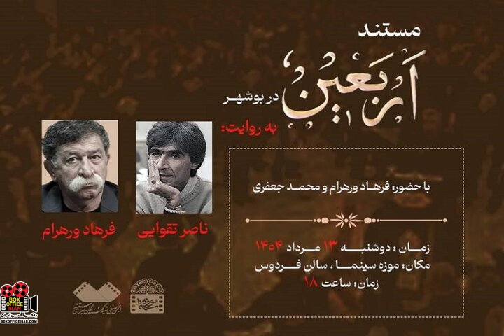 به گزارش باکس افیس ایران: سیوچهارمین نشست «شبهای مستند در موزه سینما» روز دوشنبه ۱۳ مرداد ساعت ۱۸، در سالن فردوس موزه سینما برگزار خواهد شد. در این نشست دو مستند از ناصر تقوایی و فرهاد ورهرام با عنوان «اربعین» به نمایش درمیآیند. این آثار که به فاصله حدود ۵۰ سال از مراسم اربعین حسینی در بوشهر ساخته شدهاند، روایتی از این آیین مذهبی در گذر زمان ارائه میدهند.