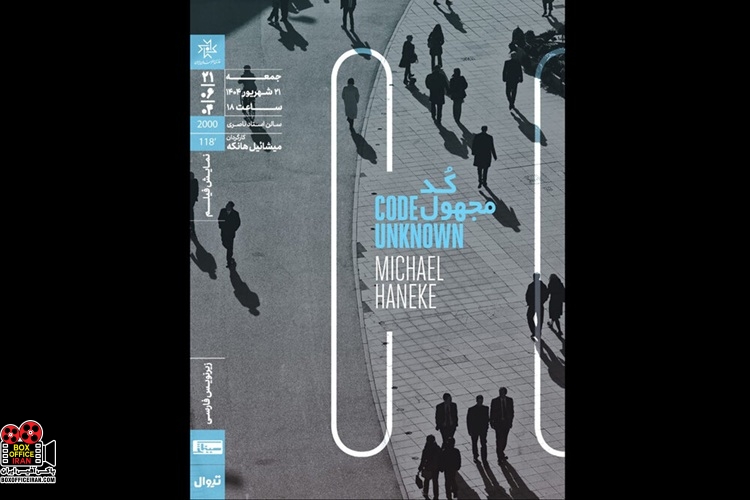 به گزارش باکس افیس ایران: فیلم سینمایی «کد مجهول» به کارگردانی میشائیل هانکه جمعه در خانه هنرمندان روی پرده میرود. فیلم سینمایی «کد مجهول» محصول سال ۲۰۰۰ بهکارگردانی میشائیل هانِکه، ساعت ۱۸ جمعه ۲۱ شهریور در سالن ناصری خانه هنرمندان ایران به نمایش درمیآید.