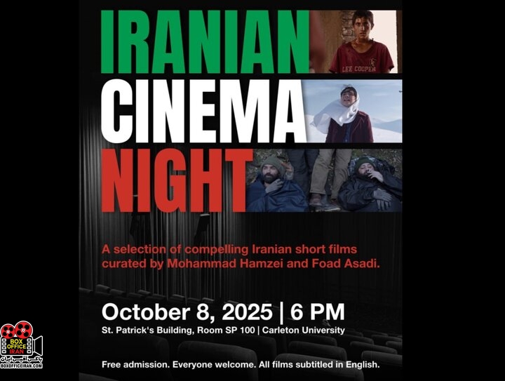 نمایش منتخبی از فیلمهای کوتاه سینمای ایران، روز چهارشنبه ۱۶ مهر برابر با ۸ اکتبر ساعت ۱۸ در دانشگاه کارلتون (Carleton University) شهر اتاوا برگزار خواهد شد.