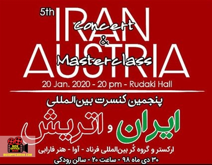 به گزارش باکس افیس ایران: پنجمین کنسرت بین المللی هنرمندانی از ایران و اتریش روز ۳۰ دی در تالار رودکی تهران میزبان علاقه مندان موسیقی خواهد بود.