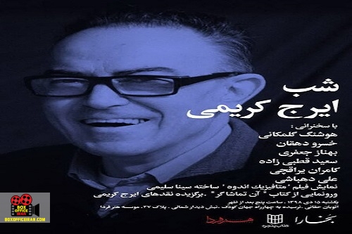مراسم شب ایرج کریمی با نمایش فیلم کوتاه «متافیزیک اندوه» ساخته سینا سلیمی و رونمایی از کتاب «آن تماشاگر» که شامل گزیده نقدهای ایرج کریمی است و توسط نشر پنجره منتشر شده است، در موسسه هنر فردا برگزار میشود.