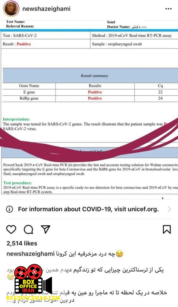به گزارش باکس افیس ایران: نیوشا ضیغمی بازیگر سینما و تلویزیون در صفحه شخصی خود اعلام کرد که به کرونا مبتلا شده است.