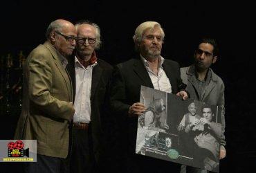 الناز شاکردوست کنار بهاره افشاری پشت صحنه تئاتر رامبد جوان